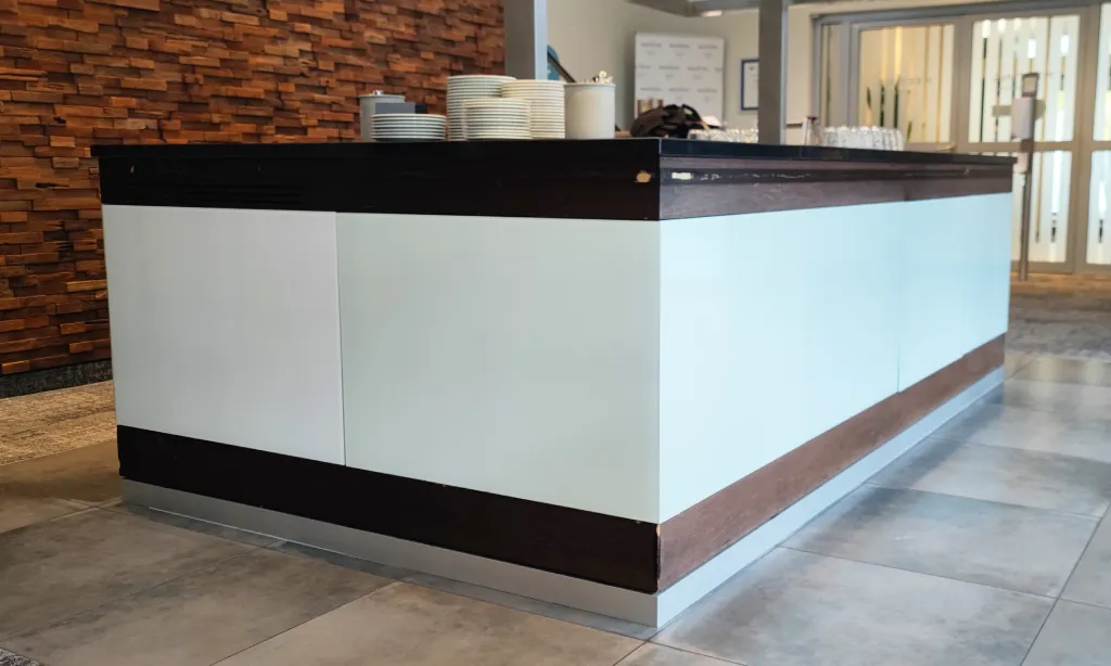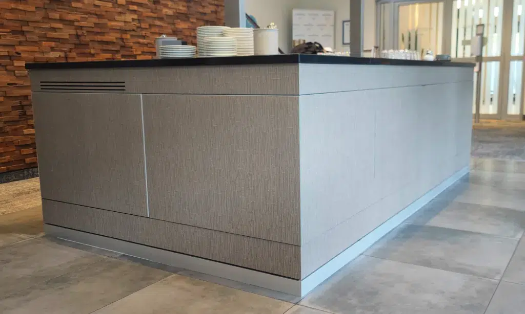 Statt Neuanschaffung werden bestehende Möbel professionell veredelt. Das spart Kosten, schont Ressourcen und sorgt dennoch für ein hochwertiges, zeitgemäßes Erscheinungsbild.